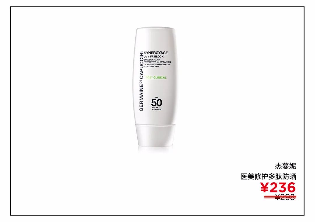 西班牙皇室品牌Germaine de Capuccini的這款防曬霜,醫(yī)美后的脆弱肌膚也可以使用,納米級皮膚屏障,增強(qiáng)皮膚的再生和抗炎功能,持久抵御外界刺激對皮膚的影響。