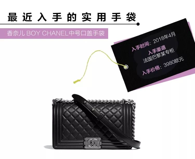 去年4月去巴黎旅行的時候,在專柜買到了這款心心念念了好久的中號BOY CHANEL口蓋包,當時剛好是店內(nèi)的后一款,lucky!
