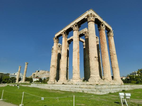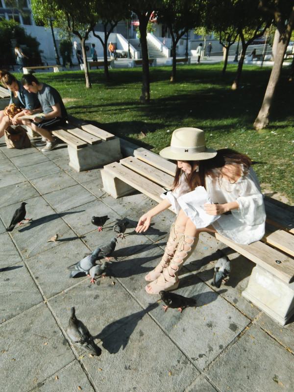 喂完鴿子,我們繼續(xù)跟著導(dǎo)航前往宙斯神廟。雅典的景點(diǎn)都很集中,基本上步行都能到。雖然雅典的街區(qū)真的不算新,也很少有摩天大樓等高層建筑,但是抬頭就是艷陽和藍(lán)天,連帶著走路的心情都略帶興奮。
