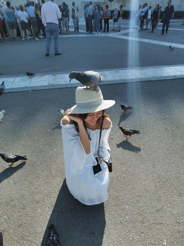 廣場(chǎng)上到處可見鴿子,還會(huì)有人拿食物給你喂它們??墒俏也淮_定到底要不要錢,就沒拿了。