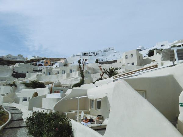 還了車,我們拖著行李前往后一個(gè)位于Firostefani的”Alta Vista Suites“酒店。這個(gè)酒店真心難找啊,其實(shí)你知道它在哪里后,就很方便??墒遣恢赖臅r(shí)候,跟著導(dǎo)航也是找不到門啊。后來問了其他酒店的大叔,才找到。不過真的是個(gè)幽靜的地兒。Firostefani漂亮的酒店很多,比Imerovigli近,酒店的檔次又比Fira的高,周邊的景比起步棧道真的是有好沒差。可惜時(shí)間太緊,沒辦法完整的逛下來。