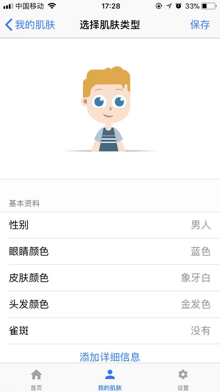 點(diǎn)擊下方「我的肌膚」,可以先自定義肌膚類型,方便應(yīng)用后續(xù)給出方案。
