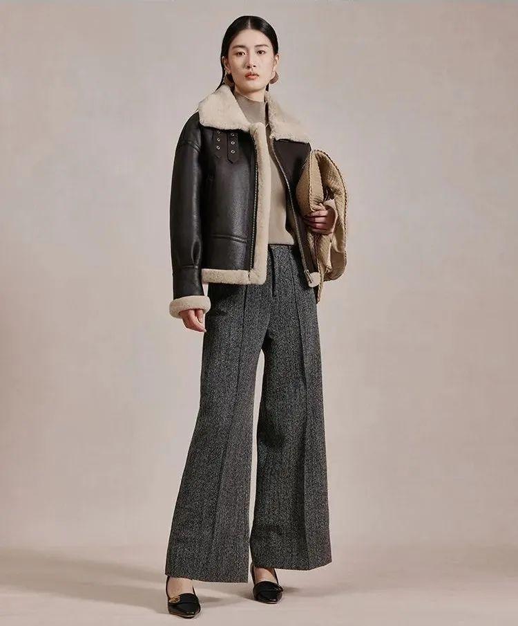 風(fēng)度與溫度兼?zhèn)涞臋C(jī)車皮外套,既擁有毛絨材質(zhì)的柔和感,還具備機(jī)車皮衣的帥氣屬性,兩種沖突元素的材質(zhì)碰撞,頗具時(shí)尚態(tài)度。