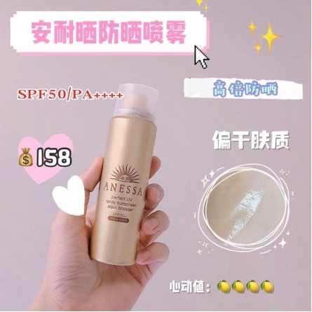 說(shuō)它是防曬扛把子不過(guò)分!除了強(qiáng)悍的防曬力以外,它的防水果也很棒,去海邊玩真的沒(méi)在怕的。而且,新版的噴霧進(jìn)行了優(yōu)化,噴霧噴出來(lái)沒(méi)有油膩感,成膜后會(huì)很舒服,適合偏干性肌膚,好東西大家分享。
