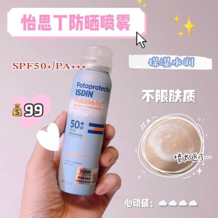 噴霧是透明的,能很快成膜,膚感清涼。剛噴出來(lái)有酒精味道,成膜后會(huì)消失,防曬力可以,小小一支,方便攜帶。只是敏感肌需慎選??傮w來(lái)說(shuō),沒(méi)有大毛病,價(jià)格實(shí)惠,預(yù)算不多膚質(zhì)健康的姐妹盤它就行。