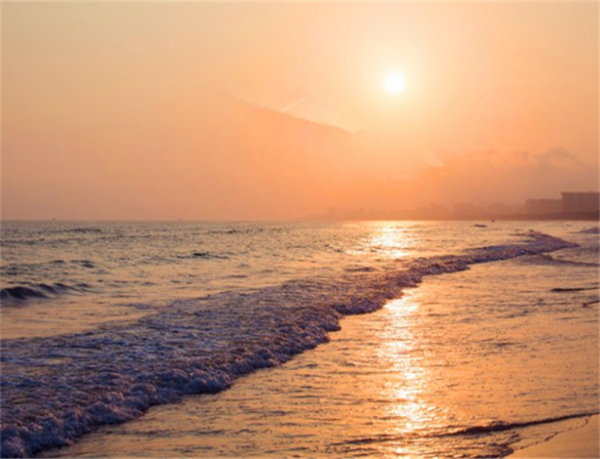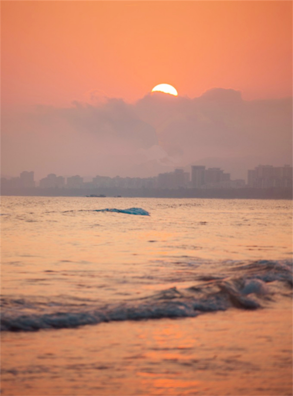 這大概也是我第一次看見這樣美的海邊夕陽(yáng),太陽(yáng)緩緩的落下去,然后在云層中有種猶抱琵琶半遮面的美麗,海面上平靜的泛起浪花,有種大江東去浪淘盡的歷史感和沉靜感