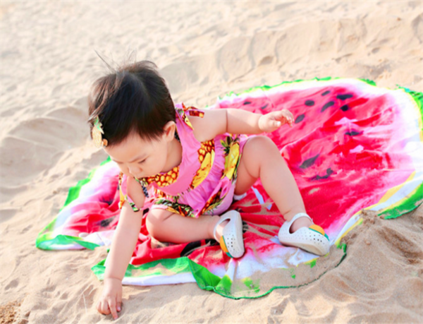 這是小茶茶第一次看見大海,她剛開始還歡欣雀躍的睜大眼睛,好奇的看著這片深深的水,很快的就自己玩起來(lái)了,我們也在路上會(huì)買了一些挖沙工具,這讓她可以短暫的脫離我們的懷抱,而去跟大自然親近親近,值得注意的是,這個(gè)時(shí)候爸爸媽媽還是要跟在一旁的哦,不然的話,孩子摔倒或者有陌生人都會(huì)很無(wú)助的