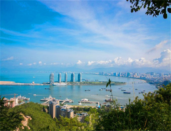山下,遠(yuǎn)遠(yuǎn)的,典型的代表建筑是鳳凰島,高高的聳立在水的中央,像是亭亭玉立的佳人一樣,站在山頂,整片三亞的景色盡收入眼底,景色的壯觀