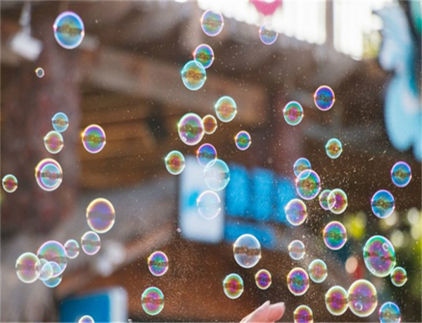 陽(yáng)光下的泡泡好美,五顏六色的