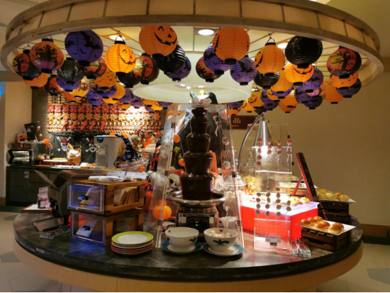 我們?nèi)胱〉臅r(shí)候正好是萬(wàn)圣節(jié)期間,萬(wàn)圣節(jié)的布置可愛(ài),還有孩子們喜歡的巧克力噴泉!其他的各種果汁酸奶冰淇淋就更不用說(shuō)了,祖國(guó)大地的各種菜系也應(yīng)有盡有,全部吃遍能把你吃撐,味道也都各具特色。