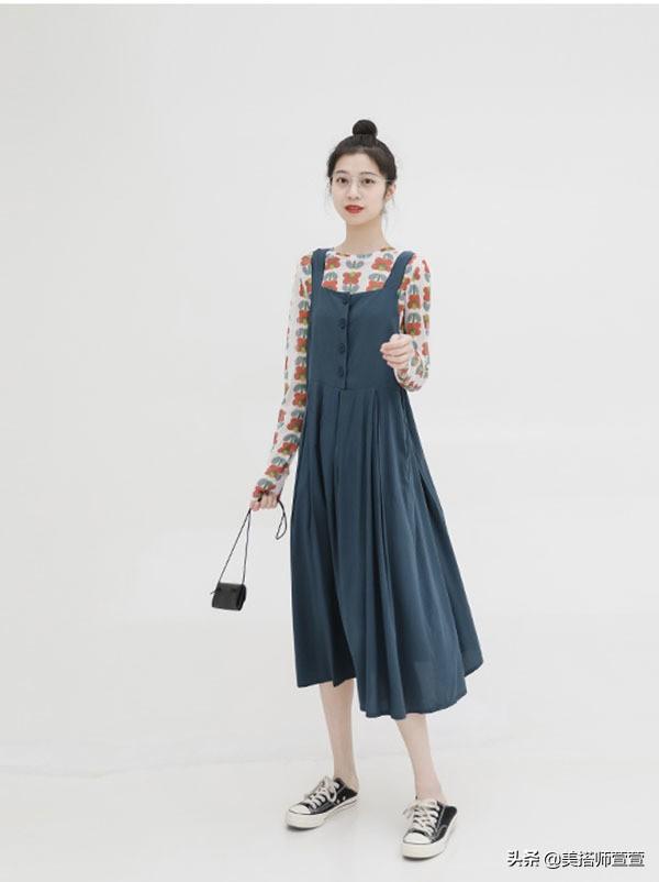 以白色打底上面帶有紅色花朵的打底衫,看上去就是比較花哨的那種,其實(shí)像是這種比較花哨的打底衫搭配白色是合適的。但是這件打底衫的底色是白色的,而且上面的花朵是平鋪的設(shè)計(jì),所以整體看上去不會(huì)過于的雜亂,和這種深色的裙子搭配在一起整體的效果還是不錯(cuò)的。