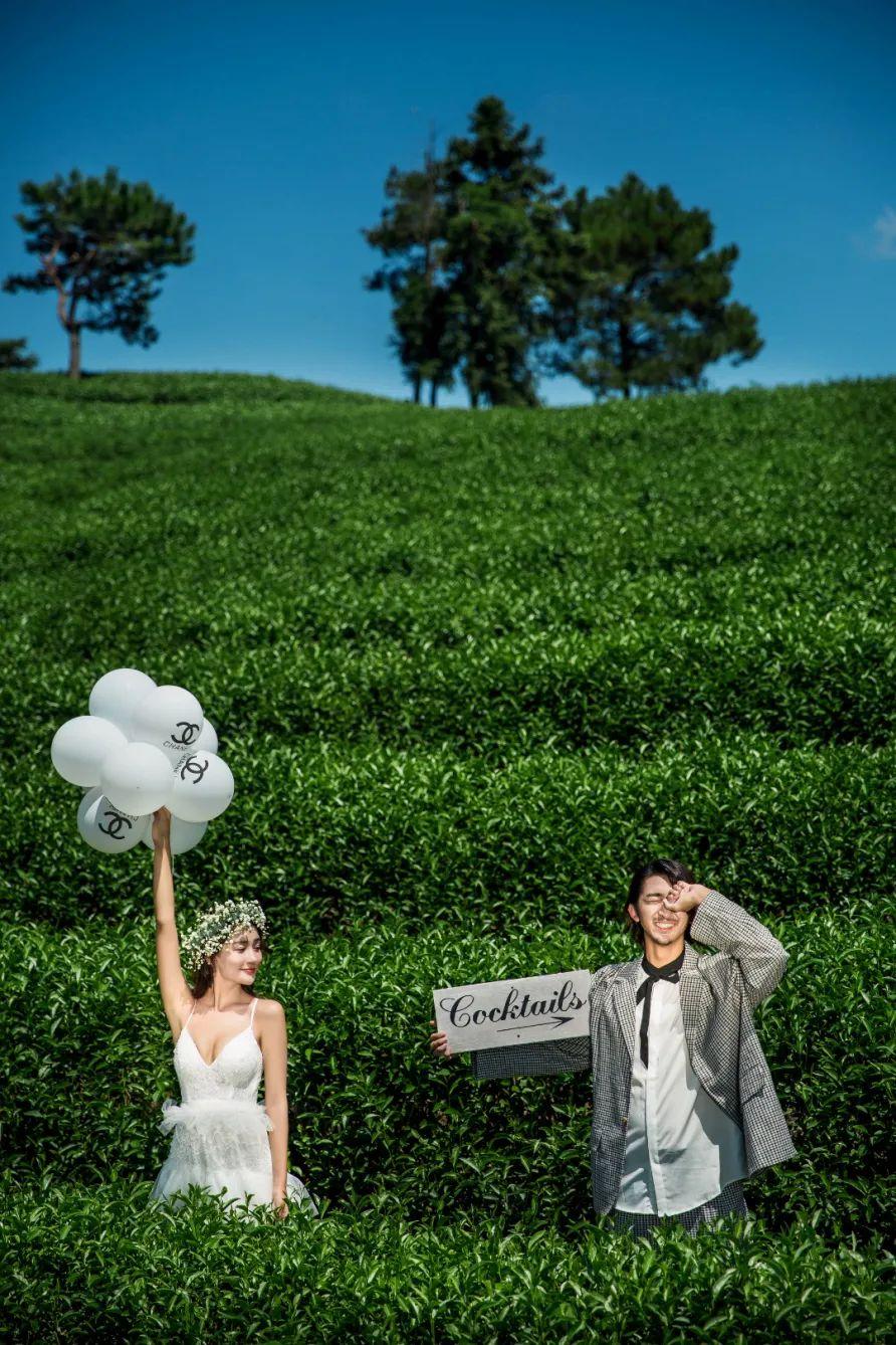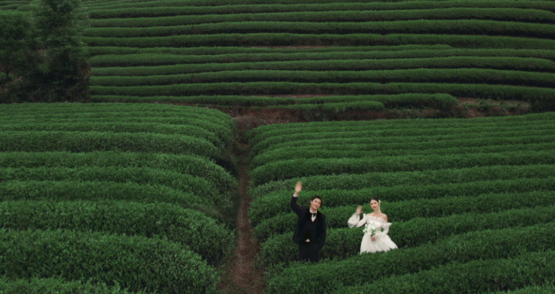 潔白的婚紗、翠綠的茶芽、一望無際的藍天,清新自然的氛圍里有相愛的新人們,相機里,記錄下宮崎駿漫畫般清新靈動的美好時刻。