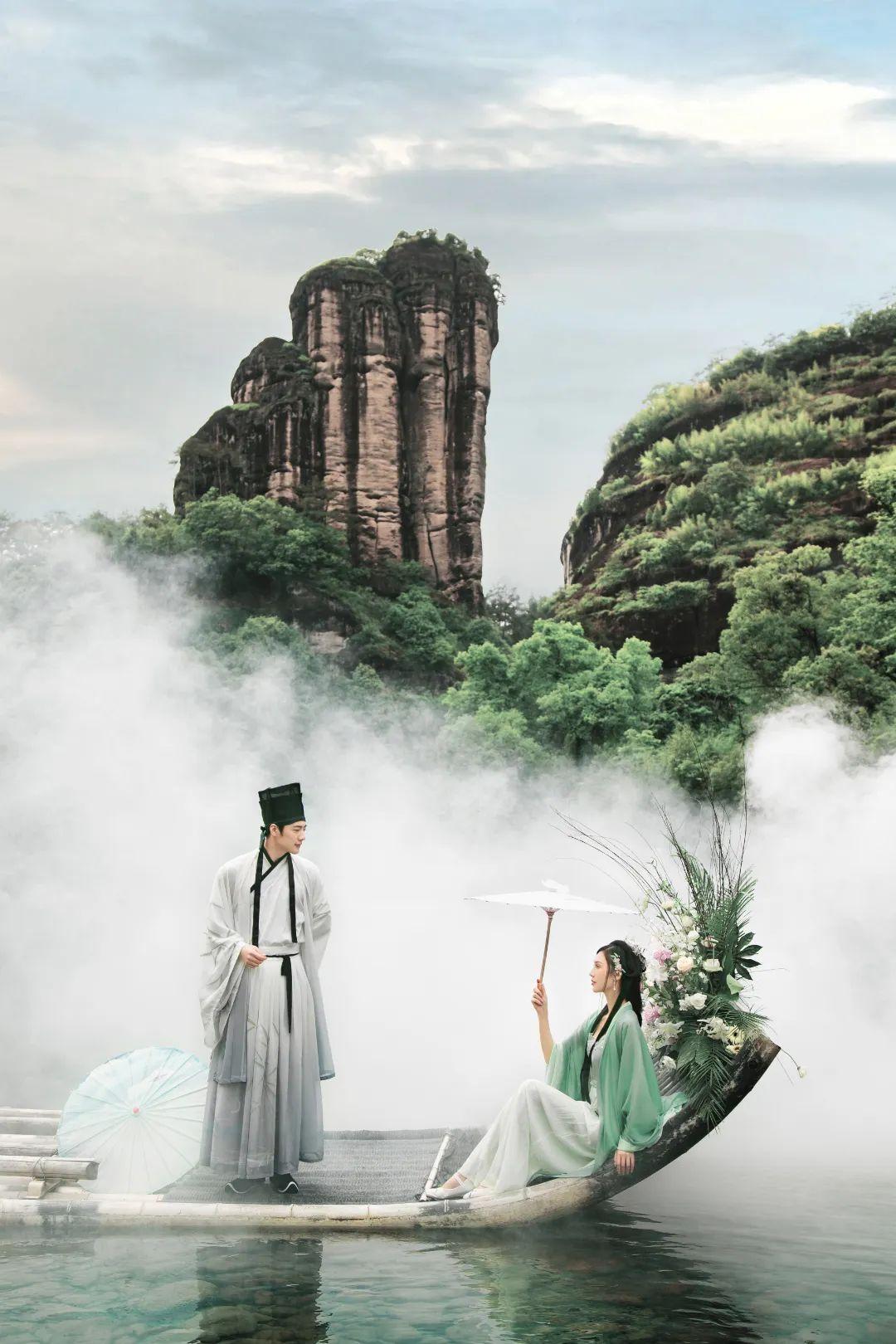 除了西式白紗,武夷山也很合適漢服婚紗風(fēng)格。選擇哪種婚紗照風(fēng)格,主要還是要看新人自己的喜好和形象的佳匹配程度。