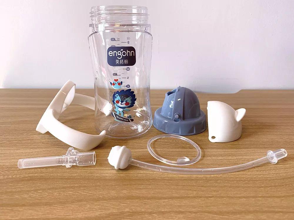 好孩子:安裝較容易。杯蓋及彈扣按鈕內有縫隙,吸嘴呈彎曲狀,清洗可能不徹底,有殘留液體的風險;刻度線易讀程度較高。