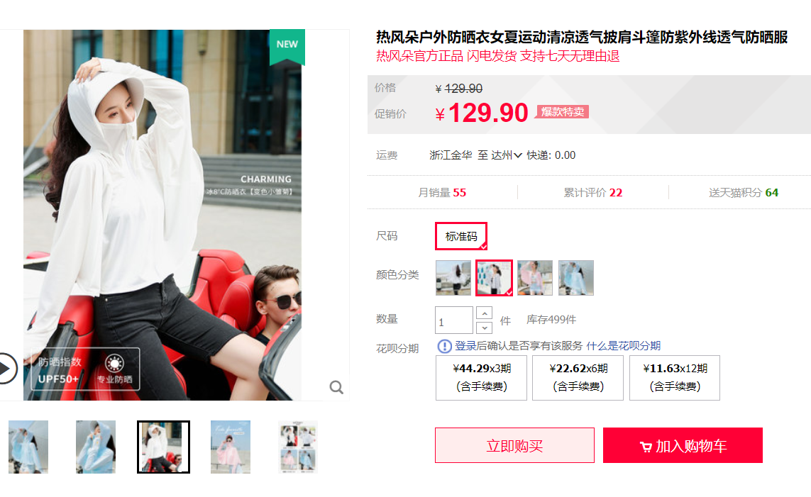 這1件熱風(fēng)朵防曬衣=帽子+口罩+冰袖+防曬衣,性價(jià)比超高。