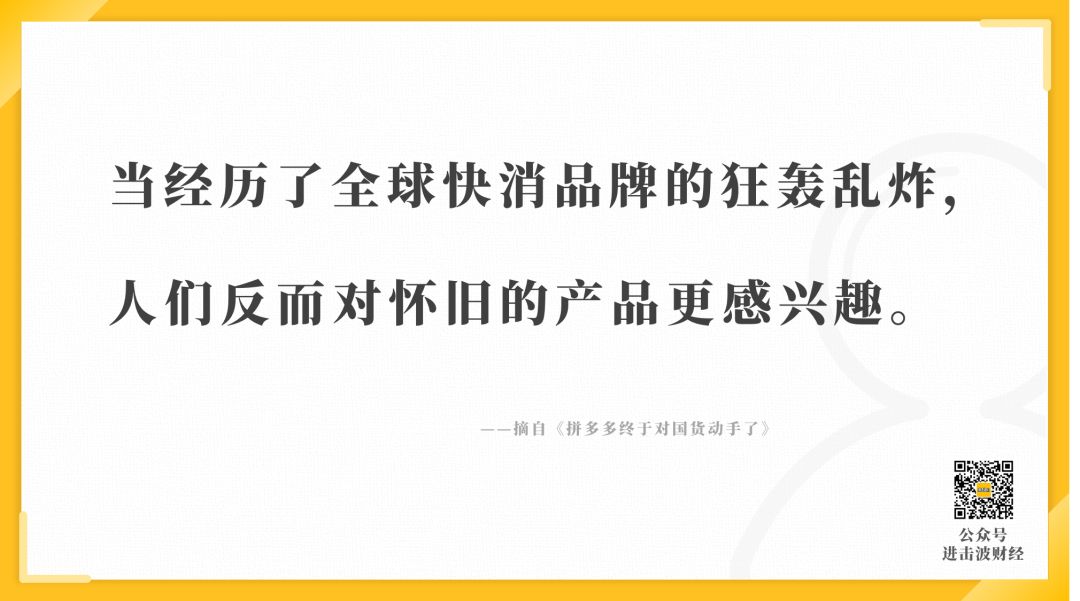 當(dāng)經(jīng)歷了快消品牌的狂轟亂炸,人們反而對(duì)懷舊的、有情懷屬性的產(chǎn)品更感興趣。