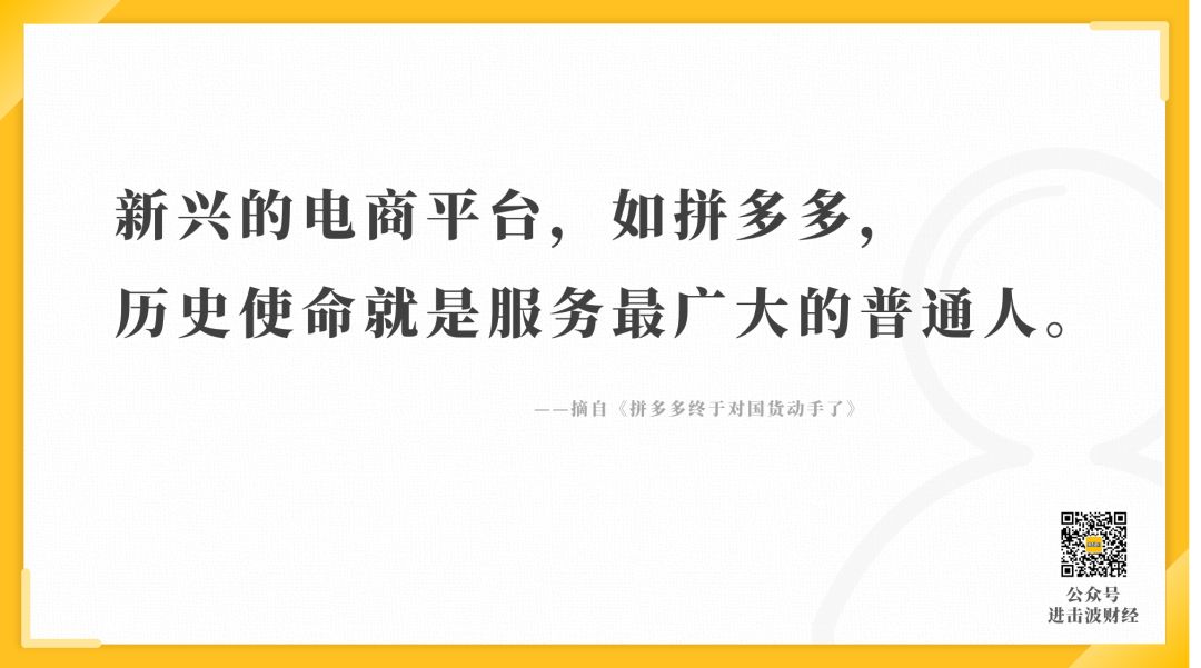像拼多多這類新興的電商平臺(tái),其歷史使命就是服務(wù)廣大的普通人。觸達(dá)與激活廣大的普通人,也將成為國(guó)貨復(fù)興的杠桿。