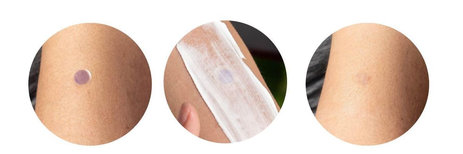 AMZ123了解到,這款貼紙的具體使用原理是:先將貼紙貼在暴露的皮膚表面,例如手臂、脖子等部位,然后再將防曬霜覆蓋上去,當(dāng)防曬霜被蹭掉或防曬力不足的時候,貼紙的顏色就會發(fā)生變化,由透明色變?yōu)樽仙?/p>