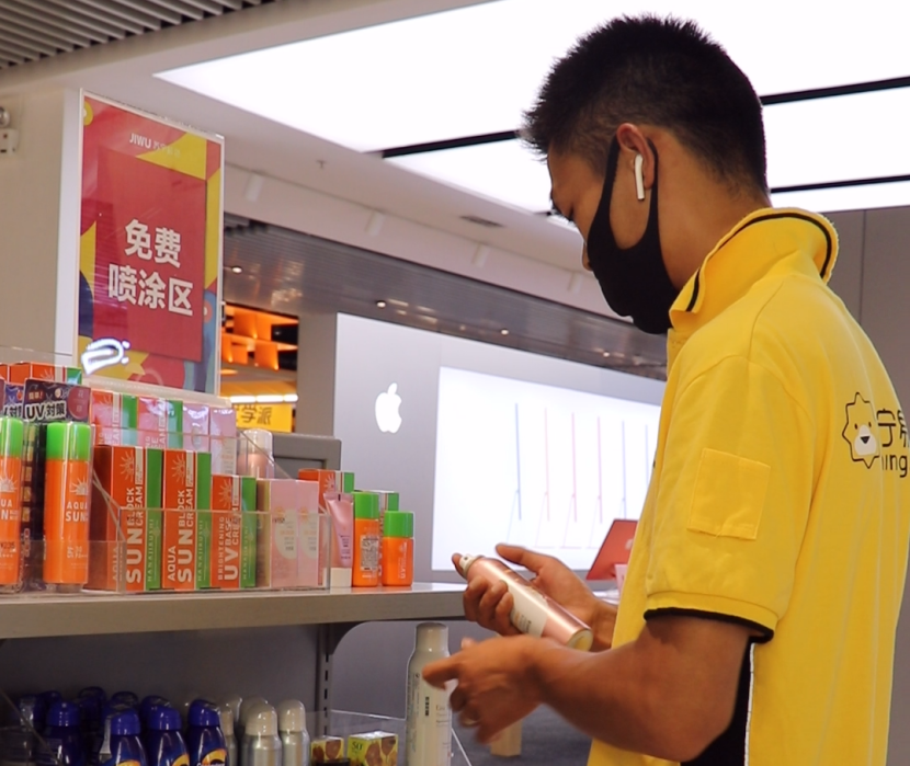 據(jù)店員介紹,活動上線以來,除了進店消費的市民體驗外,還吸引了不少戶外工作者前來??爝f員、環(huán)衛(wèi)工、外賣員等,經(jīng)過活動區(qū)后也來“噴一噴”,加護防曬。