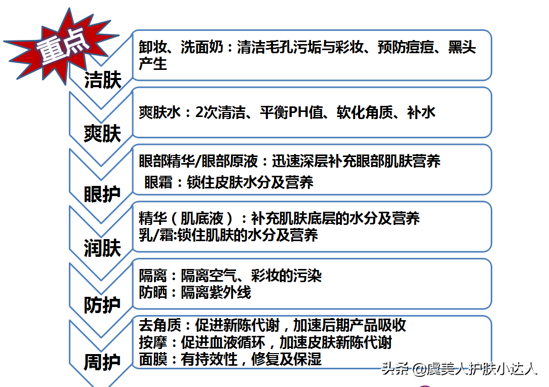 接下來(lái)給大家講一下我們基本的一個(gè)護(hù)膚的流程,如下圖