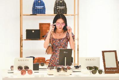 近日,海南三亞國(guó)際免稅城在海南三亞市增開了兩家免稅體驗(yàn)店。顧客可在免稅體驗(yàn)店內(nèi)體驗(yàn)商品后,在網(wǎng)上下單購(gòu)買。圖為一名顧客在新開于三亞紅樹林度假酒店內(nèi)的免稅體驗(yàn)店體驗(yàn)商品。 蒲曉旭攝(新華社發(fā))