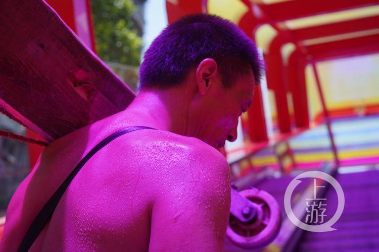 他就是冉光輝,因“十年父子照”走紅全國,曾被國內(nèi)數(shù)百家媒體“圍追”采訪,上過人民日報、的“重慶棒棒”。(早前報道《十年扛出一套房!這個重慶“棒棒”還是朝天門“一哥”!》 )。40℃的高溫下,他正踩著朝天門的梯坎,一步一步往上爬。這個已到“知天命”之年的男人依然用力扛起了生活的重擔。