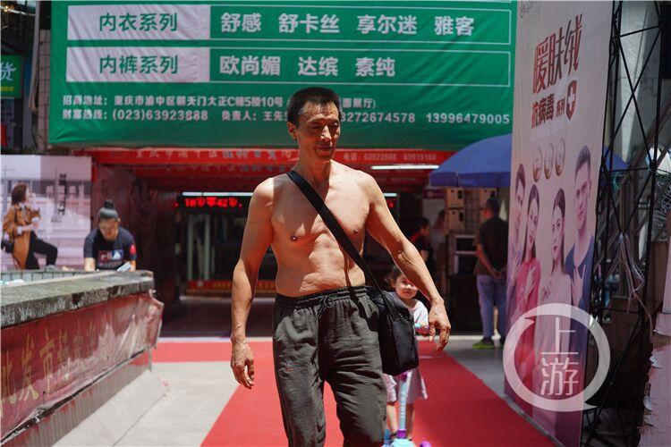 然而,要是打赤膊,很多商場是不讓進的,于是他平時就把衣服塞進包里隨身帶著,進商場前再套進去。