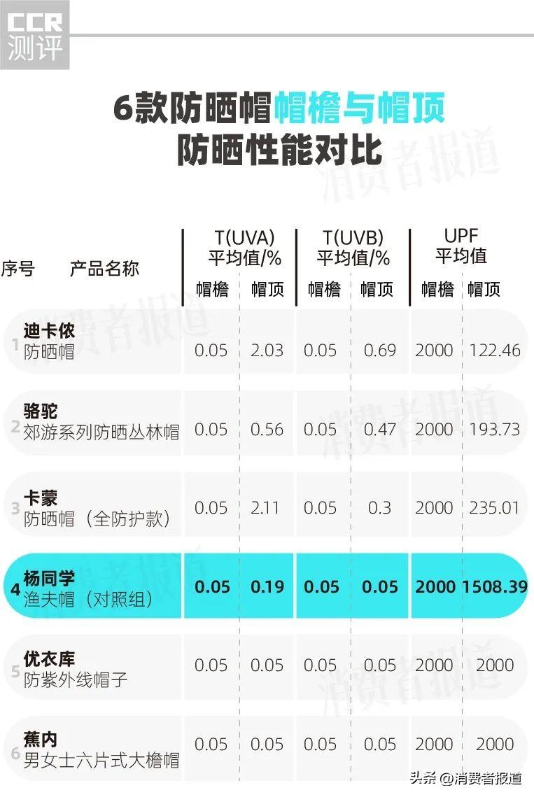 盡管如此,以上產品的帽頂UPF仍>50,保有良好的防曬能力。