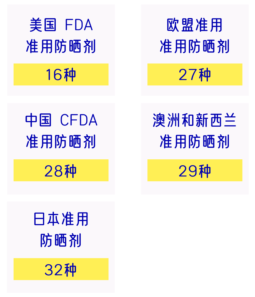任何一款防曬產(chǎn)品,在美國本土銷售都是遵循 FDA 制定的法規(guī)來更改配方的。不管你是歐系、日系牌子,只要到了美國,產(chǎn)品中的防曬劑都只能從 FDA 規(guī)定的十幾種里選擇。