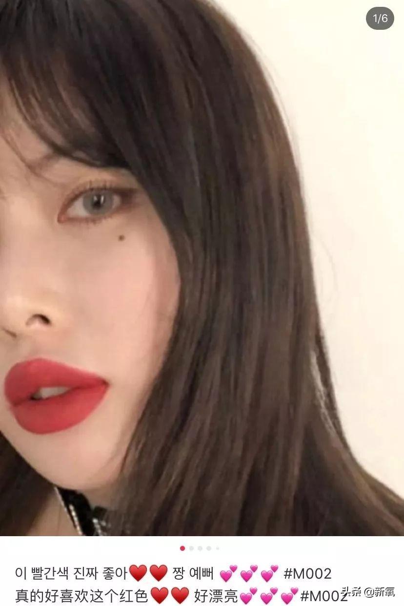 明星色號(hào)很多。比如:M002水霧紅。這支泫雅也有推薦過(guò),是顯白的山楂紅。紅得明暗正好,不土不村不出錯(cuò)。甚至厚涂顯得嘴巴都飽滿了很多。