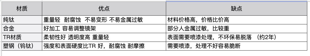 1、 重量來(lái)源-材料現(xiàn)在眼鏡架鏡框的主流材料就是鈦、鈦合金、RR-90、板材等。