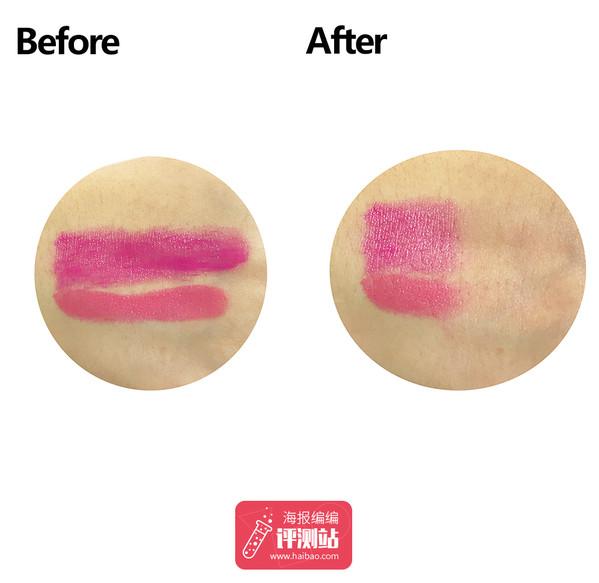 評(píng)測(cè)方法:在手背上涂抹防水型眼線筆和唇膏,然后用卸妝水擦拭。