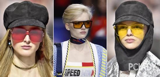 近兩年開始在時尚圈像病毒一樣蔓延開來的半透明彩色墨鏡,也經(jīng)常出沒在各大時裝周T臺上。