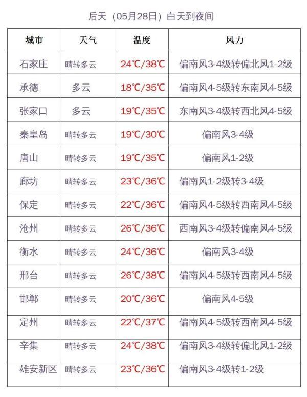 比如邢臺28、29日38℃