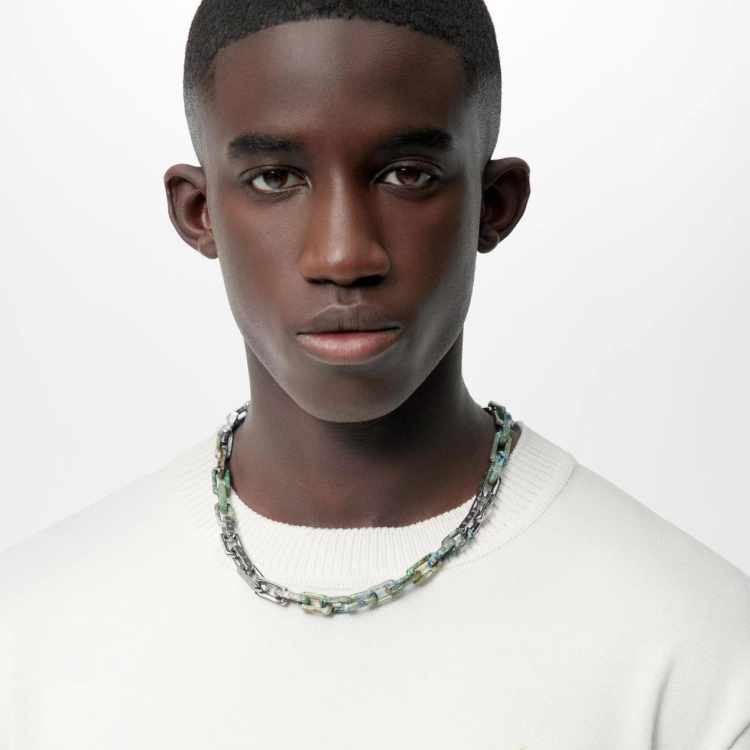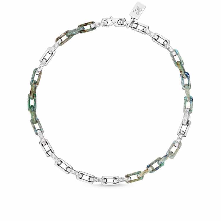 LV Monogram Chain 是有點像大火的古巴鏈但更加的精致。項鏈混合精鋼和有機玻璃,為鏈環(huán)鏤刻Monogram 圖案,印證路易威登的精湛工藝。有機玻璃的色彩呈現(xiàn)細微差異,令每件成品彰顯別樣型格。路易威登追求創(chuàng)意循環(huán)模式,以70%以上可持續(xù)材質(zhì)打造嶄新環(huán)保時尚珠寶系列。金屬鏈環(huán)取材可循環(huán)精鋼,樹脂鏈環(huán)源自可循環(huán)塑料。在制作過程中,色調(diào)隨機混合,令每件成品展現(xiàn)別致美感。