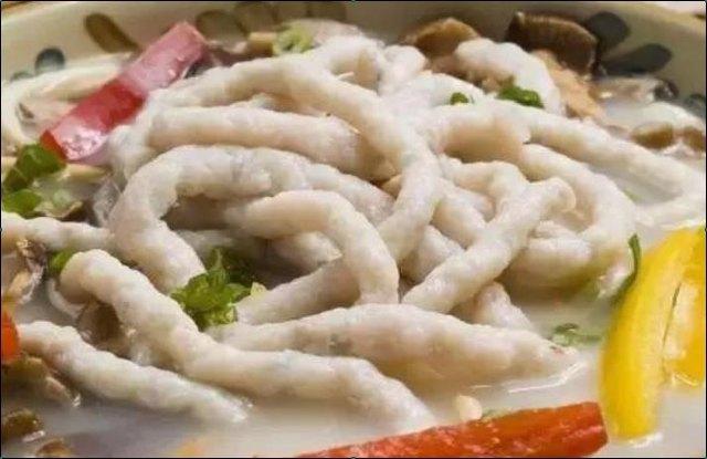 魚面是閘坡漁港名菜之一,俗稱敲魚面。其主料還是以馬鮫魚為主,加一定比例的淀粉,可歸結(jié)為四個字:軟、滑、甜、爽;