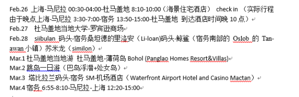 2015.2.26號凌晨0:30的Z2019亞航飛機(jī),于是25號晚和老媽坐2號線到機(jī)場,九點(diǎn)差不多就到了。10點(diǎn)15亞航才開始值機(jī)??墒牵墒?,可是??!竟然說飛機(jī)要晚點(diǎn)三個小時?。≡蚴窍愀凵峡障蘖?,導(dǎo)致來接我們的飛機(jī)晚從馬尼拉出發(fā)三小時。但是我們后面8點(diǎn)10分有菲航飛杜馬的飛機(jī)?。?!無奈三點(diǎn)半上海起飛后,快七點(diǎn)才到達(dá)馬尼拉。雖然有亞航給的延誤證明,但是不同的航空公司溝通環(huán)節(jié)有問題只好自己負(fù)責(zé),一班機(jī)票報廢。只能臨時買票,又貴又容易買不到!終只能買到馬尼拉飛宿務(wù)的宿務(wù)航空機(jī)票!導(dǎo)致了一天的奔波。另外這班飛機(jī)真的抖,,一度嚇得睡不著。。。不過亞航空姐都蠻漂亮的