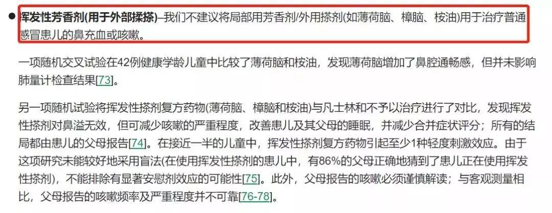 除了圖片中所提及的不推薦原因外,還有一種原因是因?yàn)楸『赡X產(chǎn)品對(duì)神經(jīng)系統(tǒng)有抑制作用,2歲以下嬰幼兒的嚴(yán)重不良反應(yīng)報(bào)告較多,除了風(fēng)油精,其他含有薄荷腦的復(fù)方爐甘石洗劑、清涼油、無比滴等也應(yīng)當(dāng)避免使用。