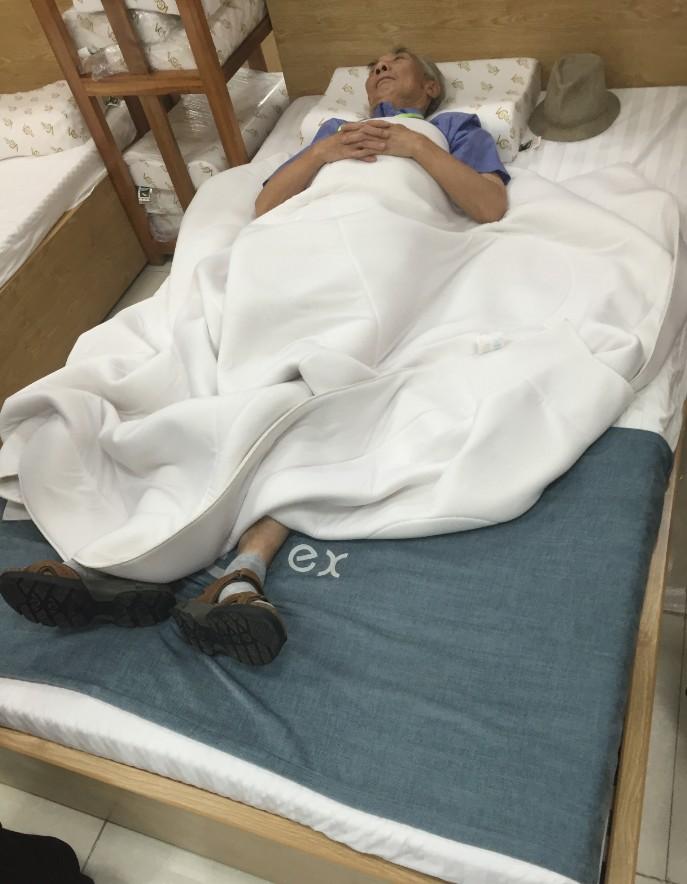 這個品牌的東西確實不錯,價格也合適,不同款式價格不同,均價的話床墊1w+一張,枕頭約500一個,老爺爺蓋得這個乳膠被1600+一床了,這不,舒服的就睡著了,猛想起了多年前多喜愛的廣告,有人記得的嗎?