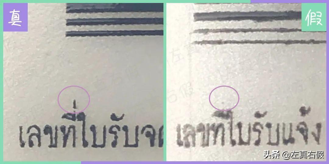 而假貨的“燒”字中“十”筆畫偏向左邊