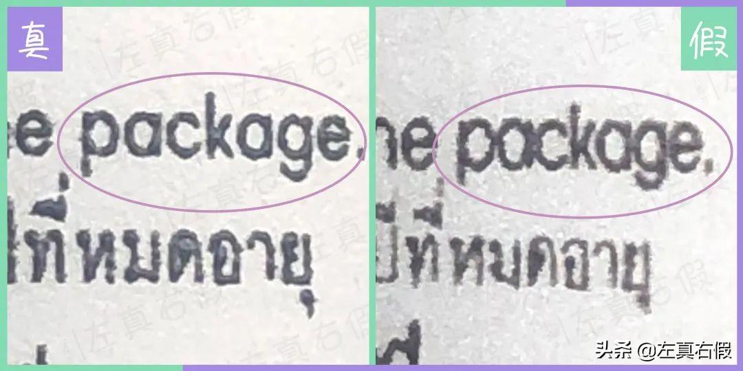 假貨的印刷很淺,不均勻