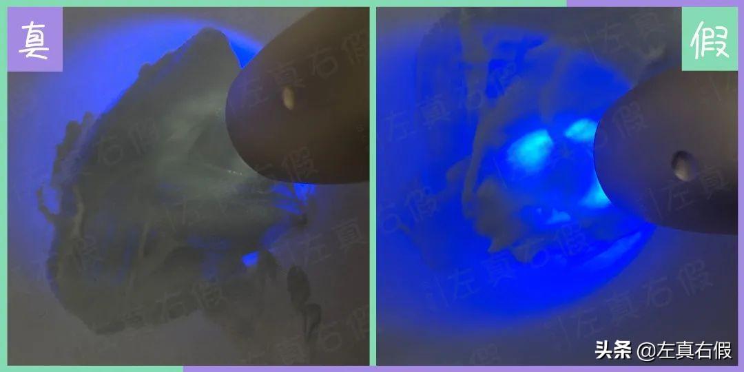 而假貨的膏體有大量的熒光反應(yīng)