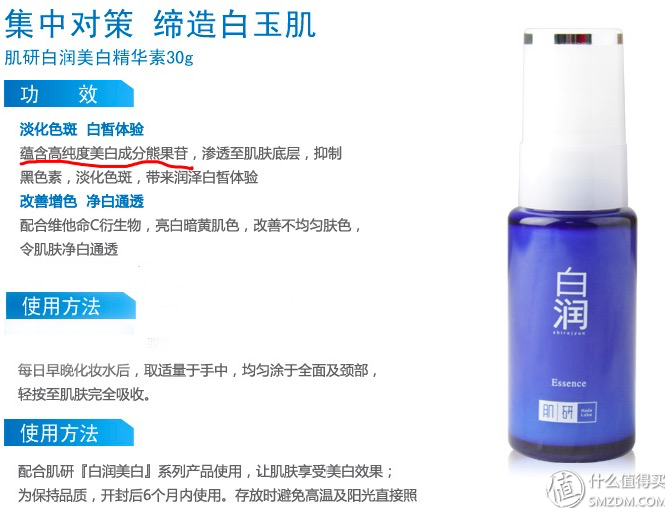 去購(gòu)買曼秀雷敦的肌研系列,也算一個(gè)平價(jià)產(chǎn)品中的品牌了。有多少小仙女都是學(xué)生時(shí)代,從這個(gè)牌子開始進(jìn)入護(hù)膚領(lǐng)域的。雖然長(zhǎng)大以后才發(fā)現(xiàn),他家的東西真的是很雞肋,但是架不住價(jià)格誘人。 而且現(xiàn)在曼秀雷敦家的產(chǎn)品線多的咬人,總有一款可以觸動(dòng)你的需求。比如這瓶精華,里面加了熊果苷,如果作為夜間美白補(bǔ)充的話,這個(gè)價(jià)格,完全可以放開手腳的往臉上招呼,而毫不心痛了!
