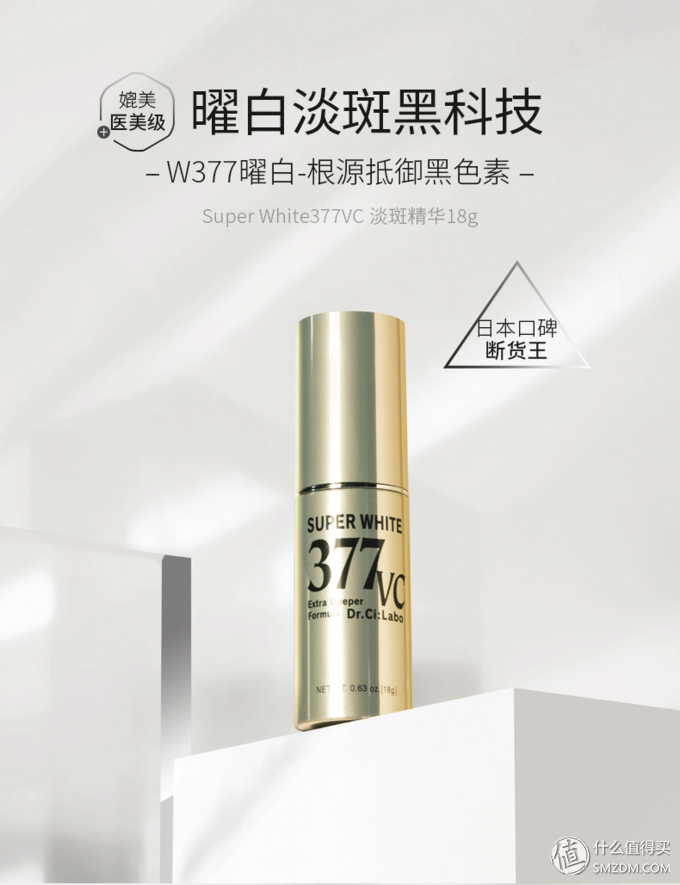 提起377,那就不能不提城野醫(yī)生這款精華。從去年開始,在各大美妝平臺(tái)上,可以說(shuō)做到了誰(shuí)人不知誰(shuí)人不曉。號(hào)稱為平價(jià)版小燈泡,它主要功效就是阻黑凈斑,還有預(yù)防斑的形成。這款精華相對(duì)比較溫和,美白效果也要更好,既美白又抗氧化,好推開,不留泥。但是18g的量搭配420的售價(jià),著實(shí)也不算平價(jià)了。但是它是日本護(hù)膚界使用抗酸化美白活性成分White 377的產(chǎn)品,無(wú)化學(xué)合成劑添加,能修復(fù)暗斑,提亮膚色,美白凈化效果!是曲酸的10倍+,苯二酚的2100倍,熊果素的7000倍!配合美白的成分還有四己基癸醇抗壞血酸酯,屬于維C的一種衍生物,有維C美白祛斑的效果,但是更加溫和、穩(wěn)定,不易分解。另外產(chǎn)品中還含有維A衍生物,以及一些活性成分,具有抗氧化作用,對(duì)抗衰老也有一定的作用,是一款不錯(cuò)的產(chǎn)品。這種數(shù)據(jù),讓我們不由自主的就剁了好幾只手。喏,手,拿去!
