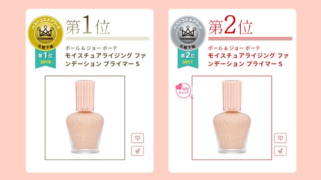 2016、17年,它還連續(xù)兩年名列日本cosme美妝大賞妝前部門的前三名。