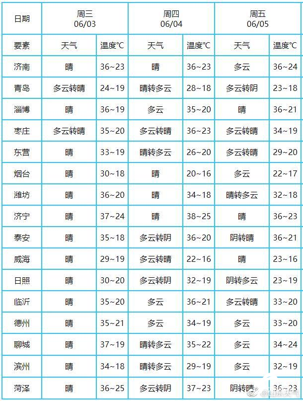 預(yù)計(jì)4日白天,菏澤、濟(jì)寧、聊城、濟(jì)南、泰安、淄博和濰坊7市的高氣溫在37℃以上,其中菏澤、聊城、淄博和濰坊的部分地區(qū)可達(dá)39~40℃;棗莊、臨沂和德州3市的高氣溫在35℃以上。