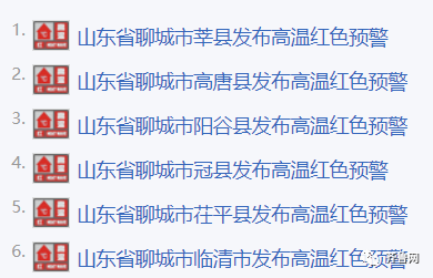 山東氣象臺(tái)今天發(fā)布了70多條高溫預(yù)警,其中聊城多地發(fā)布高溫紅色預(yù)警,預(yù)計(jì)24小時(shí)內(nèi)高氣溫將升至40℃以上。