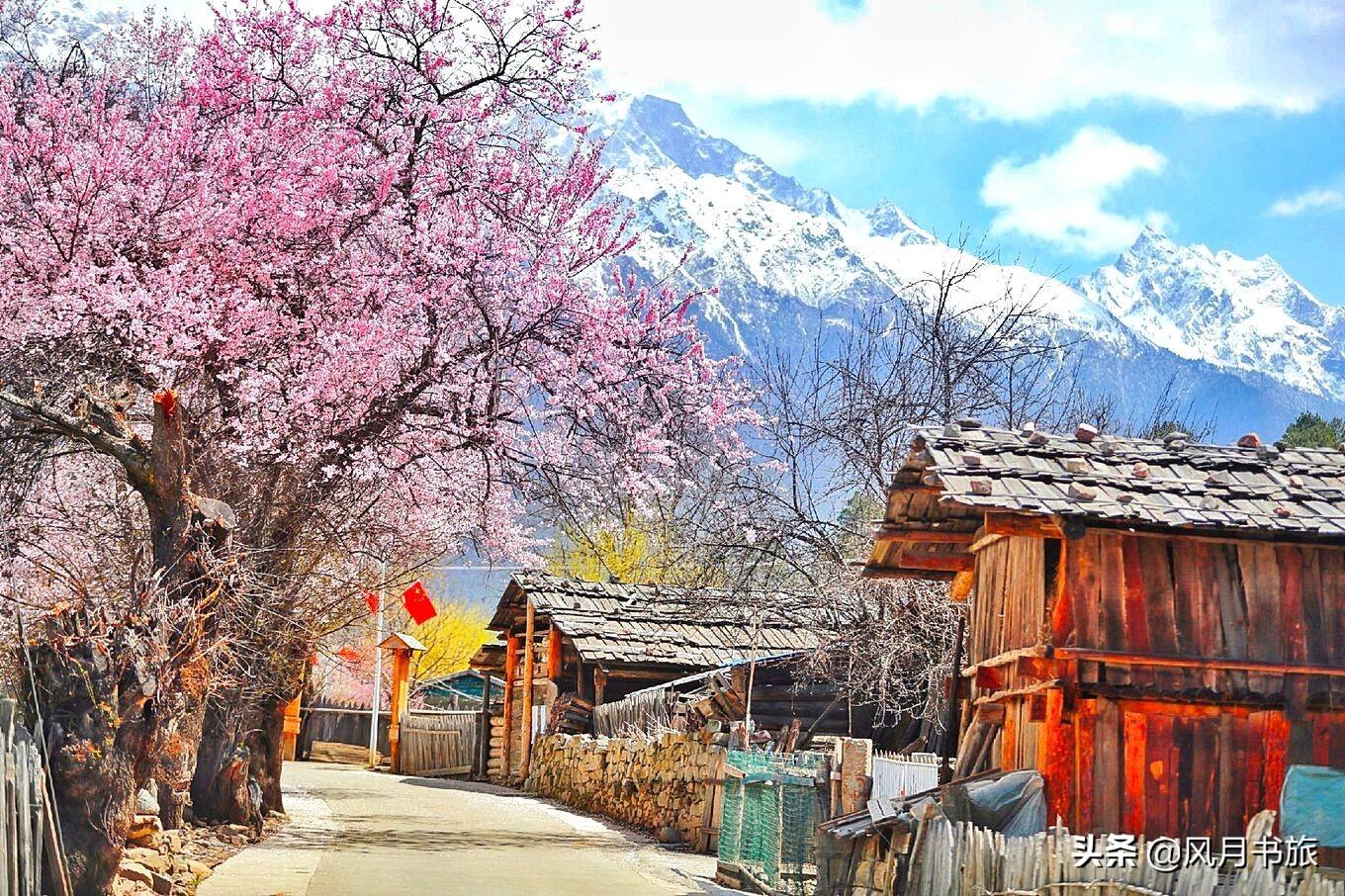 皚皚雪山作背景,蒼翠叢林為映襯,桃花相繼在漫山遍野、河谷路旁、田間地壟、房前屋后綻放,藍(lán)天白云之下,雪峰碧湖之畔,冰川森林之間,百年野桃樹,遒勁高大,花開繁茂,花瓣粉嫩似雪,不染世俗紅塵,自帶縷縷仙氣,景色宜人至極。