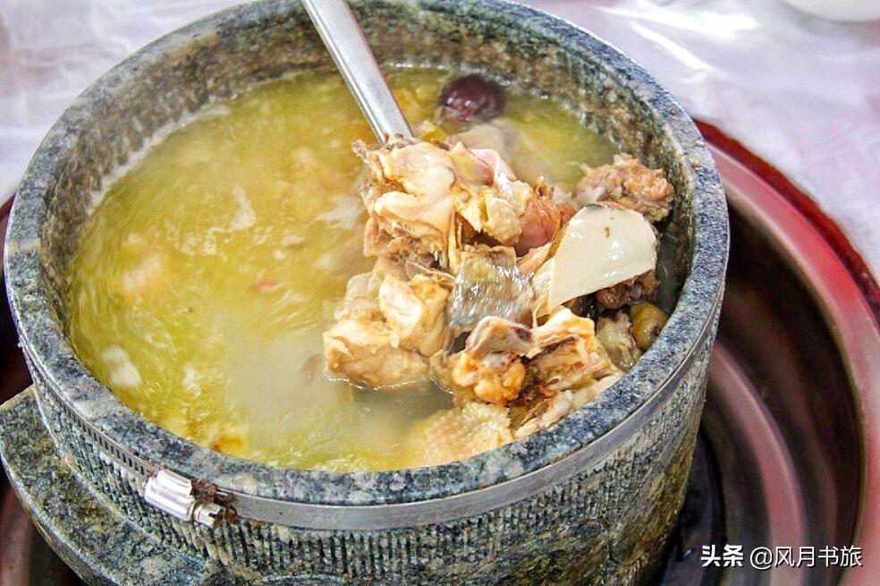 藏土雞,用雪山上流下的溪水,再配以人參、藏貝母、百合、枸杞等藥材慢燉兩個(gè)小時(shí)左右才上桌,是人間美味。