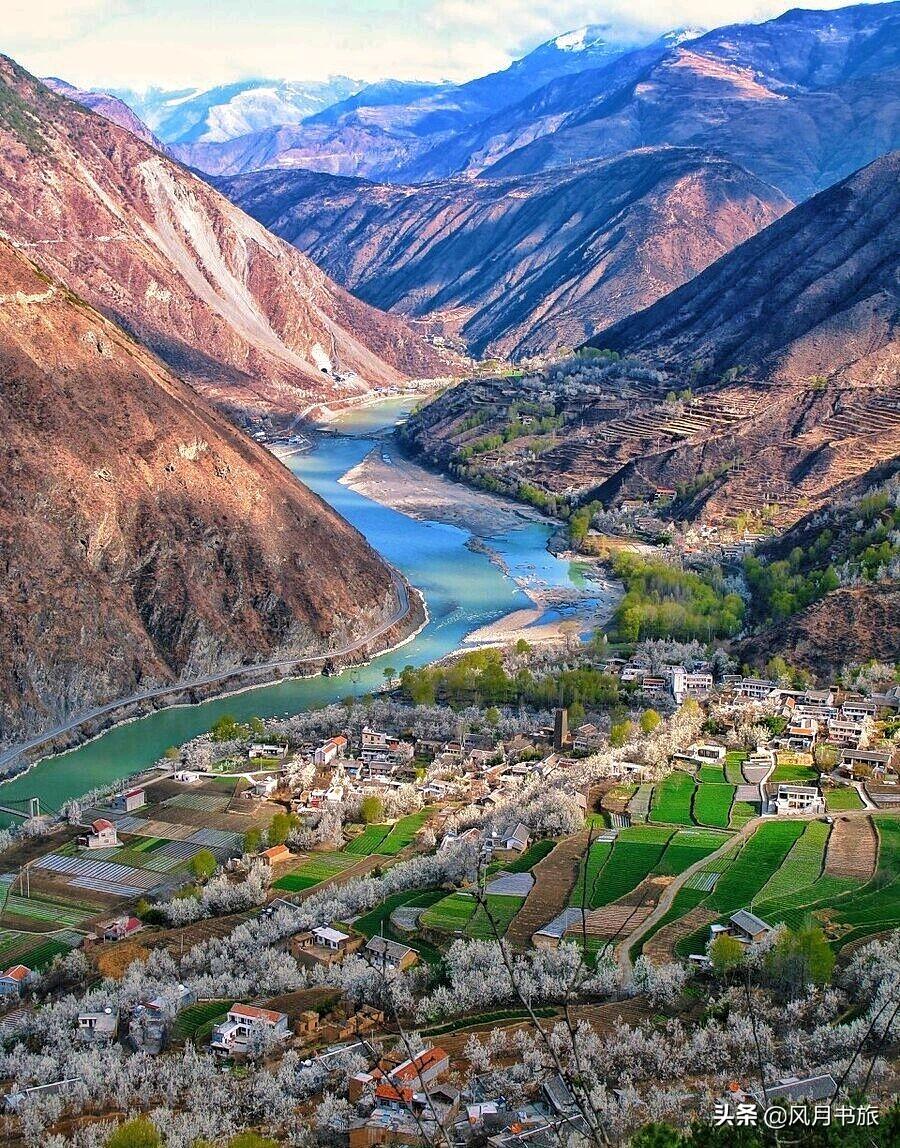 4、喀爾鄉(xiāng):觀看整個(gè)金川河谷的位置,俯瞰蜿蜒的大金川河谷與點(diǎn)綴其中的梨花。